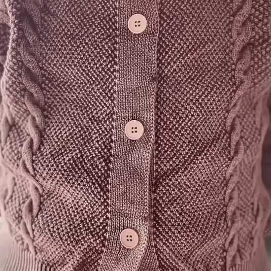 Timeless texture meets effortless ease. This cable knit cardigan in a soft, washed brown is the kind of layering piece that anchors your entire wardrobe.