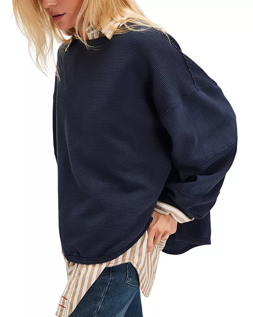 An elevated take on the classic tee, this long-sleeve from our We The Free collection features a ribbed fabrication and slouchy silhouette with defined seams and a scoop-neckline.